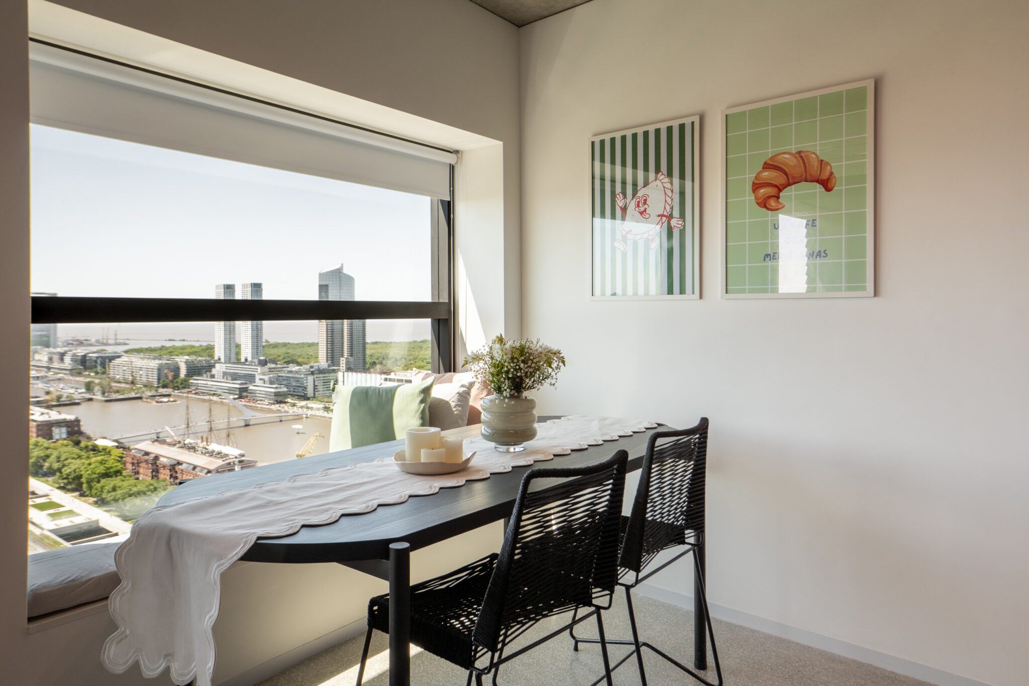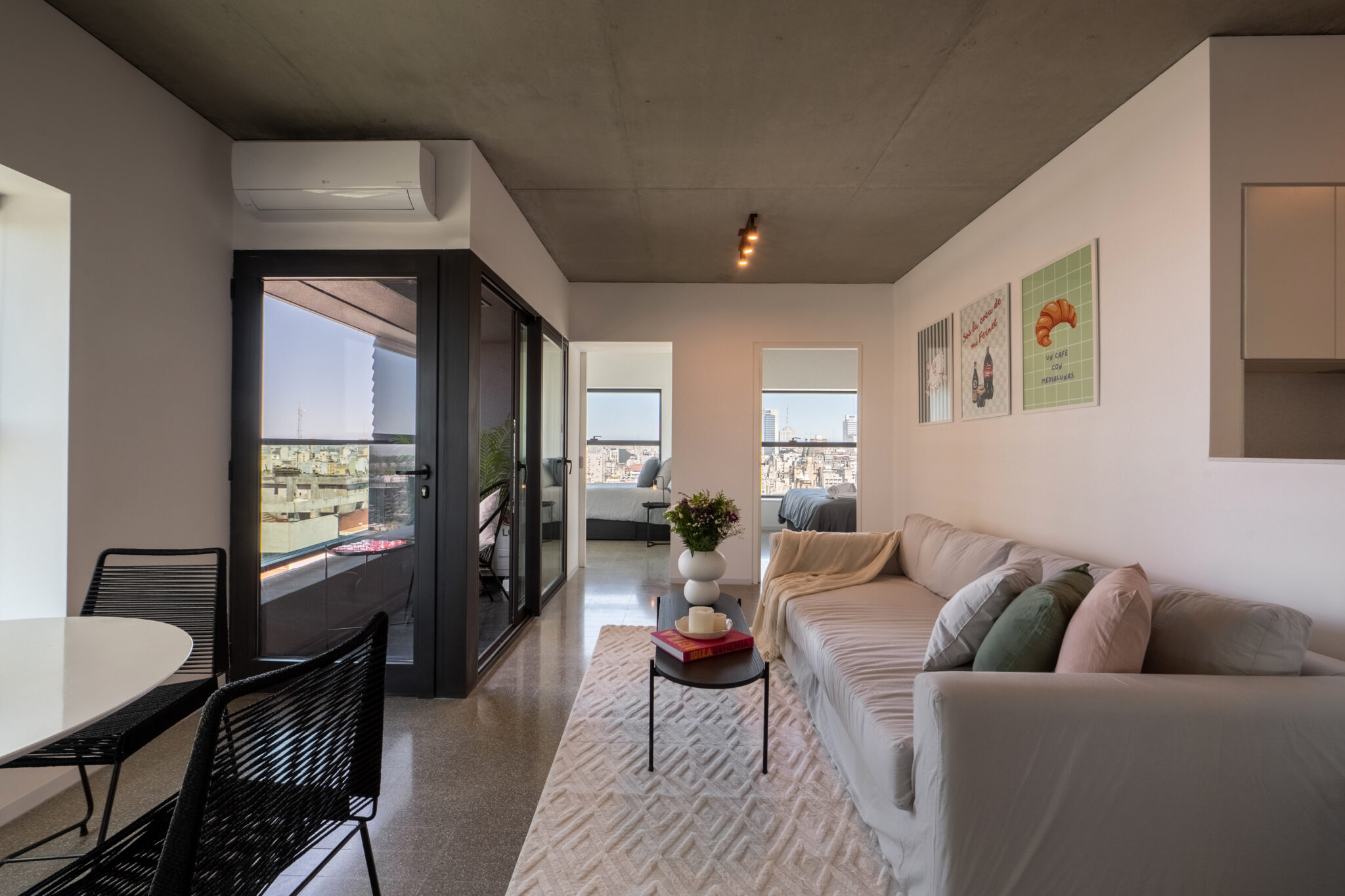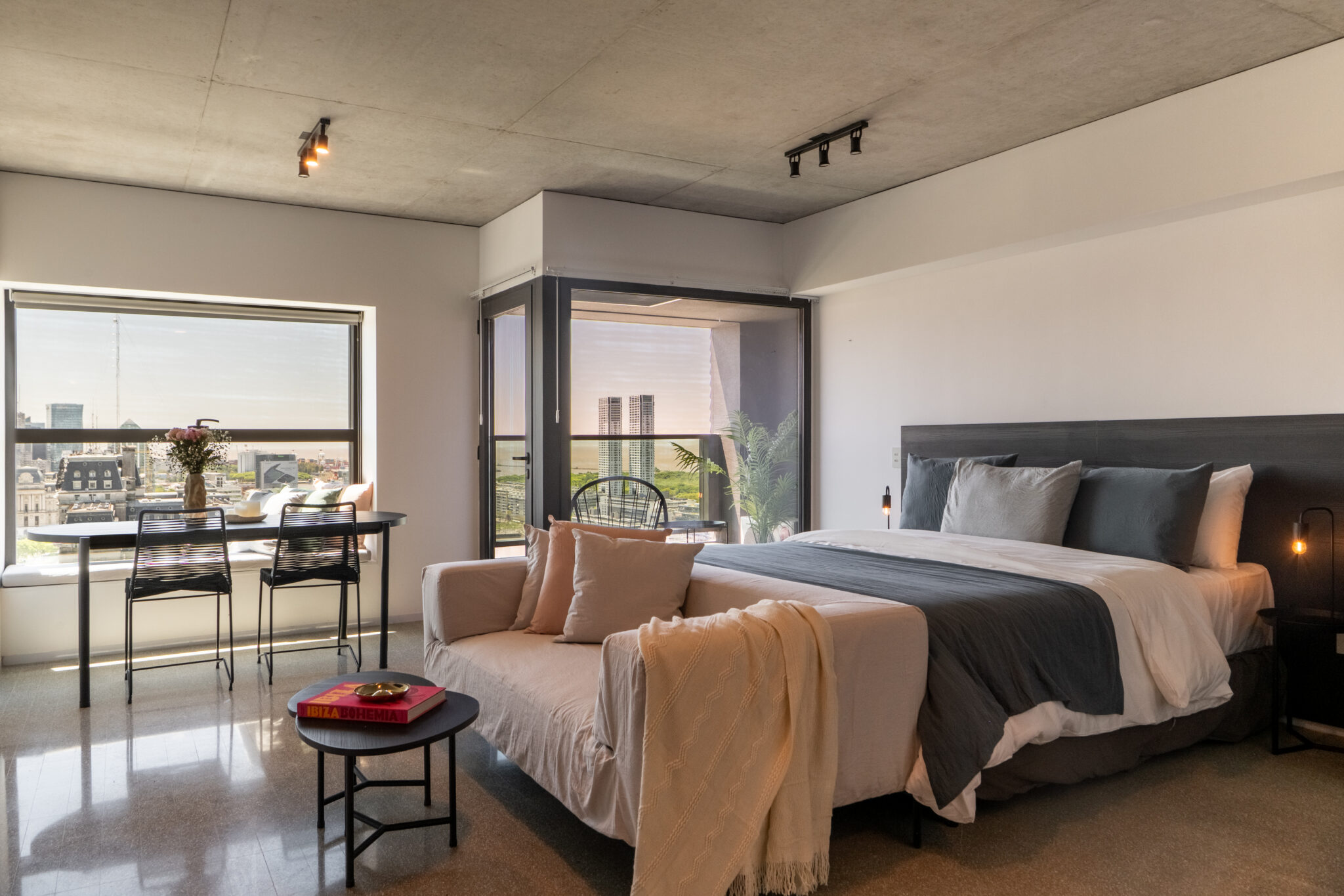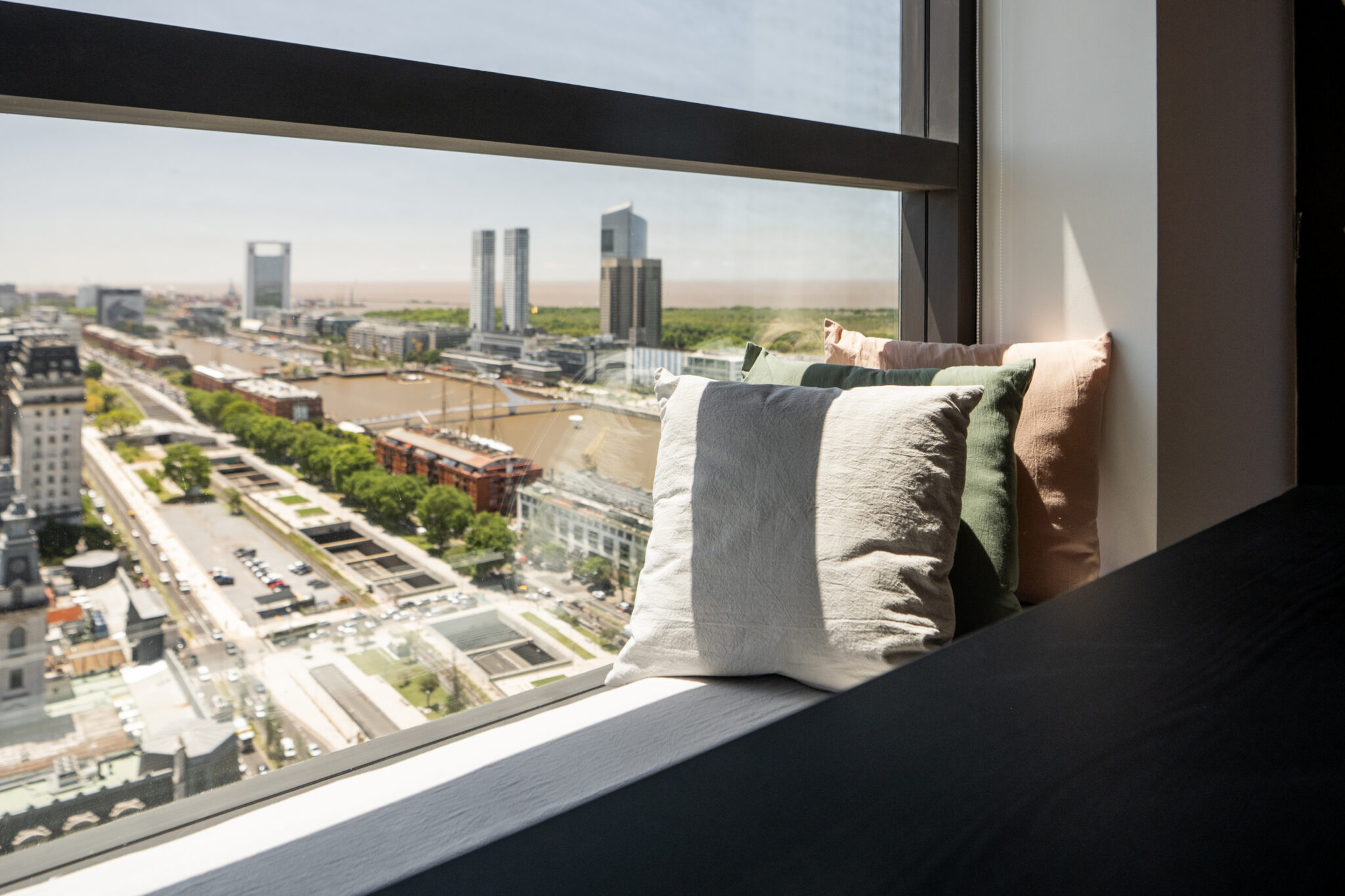 Top Rentals Huergo is located at Av. Ingeniero Huergo 475, where historic Buenos Aires meets its most modern side. This 38-story tower brings together design, comfort, and a strategic location. With studios, lofts, and 1-, 2-, and 3-bedroom apartments – all boasting privileged views of the river and the city – it offers a unique lifestyle, ideal for both business trips and urban getaways.