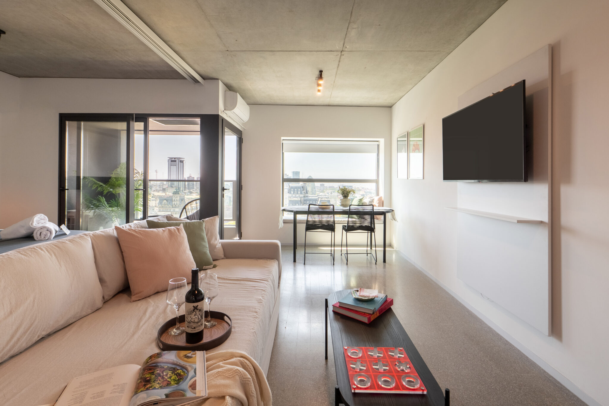 Over 4,300 m² of amenities are distributed across five areas, featuring a swimming pool, solarium, gym, spa/sauna, coworking space, multipurpose room, and expansive green spaces that invite you to relax and experience a new way of living. Comfort, excellence, and personalised service are at the heart of what our guests enjoy in our fully furnished apartments with inspiring design. Our service is unique: we offer the comforts of a hotel without the formality of one. A seamless check-in gives way to boutique-style amenities and cosy spaces that will make your stay unforgettable. At Top Rentals Huergo 475, we combine the best of both worlds.