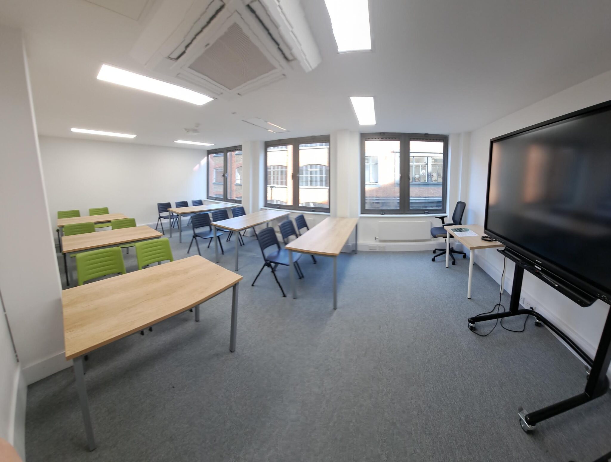 • 65″ interactive touchscreen with in‑built computer & speakers